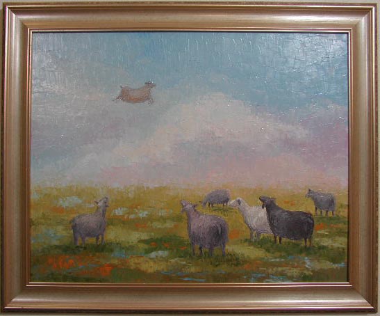 Välitalon lampaat (elokuvasta Härmä). 50x45 öljy